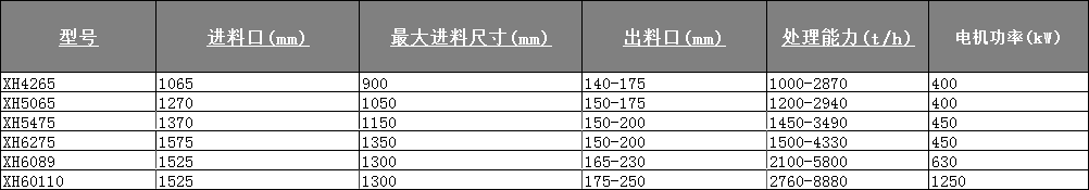 XH 旋回式破碎機(jī)擁有精細(xì)的破碎腔設(shè)計(jì),確 保更強(qiáng)的生產(chǎn)能力、更大的進(jìn)料粒度及更長的襯板 壽命;大傾角和長破碎面設(shè)計(jì),配合優(yōu)化設(shè)計(jì)的沖 程和轉(zhuǎn)速,使破碎機(jī)具有超強(qiáng)的破碎能力,適用于 各種粗碎破碎作業(yè)需求;通過簡單更換偏心套,就 可以改變破碎機(jī)的處理能力,以滿足不同的破碎工 藝需求。
